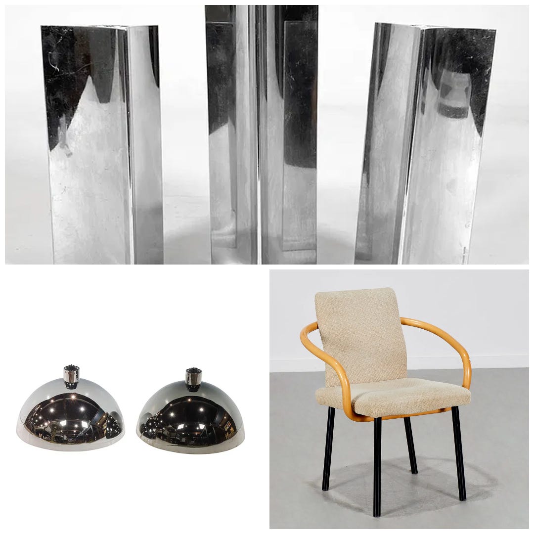The highlight to me are these Wright chairs, pictured above, Cassina 1980s. A deal; similar to the Rennie Mackintosh chairs from Teddy Roosevelt dayz which Cassina also reissued. Sort of medical furniture—don’t ask why. Auction has many other great pieces, in particular this Arts & Crafts Allen extendable table (dining table) that you never see at this size or price. There are adjacent pieces to this exact Wright chair, but flipped: this Stickley set of chairs with 1980s cushions, same color and scheming on Venturi Chips/Sottsass East Side work from the 1980s. Also this bronze Tiffany Studios plate that has to be severely healthy to eat off. And is an even crazier extension of the smalls/kitchen aesthetics discussed above. More picks below, as well as a whole glut of good furniture. Every week, only below the Snake America paywall.